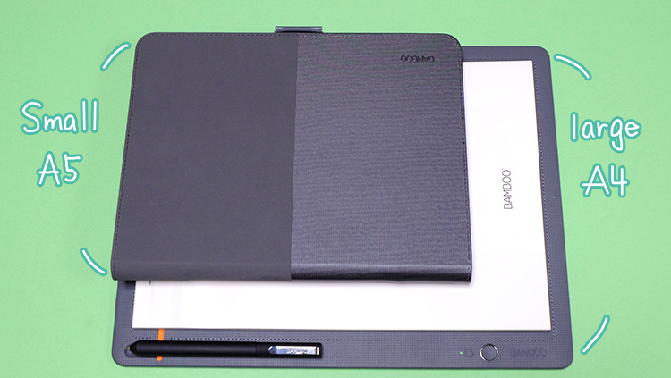 大きさは2種類あります。やまぐちが使っているのが「Bamboo Slate large」A4サイズ対応なので広々使えます! largeは企画書や資料におすすめサイズ。smallは持ち運びやノートにおすすめサイズ。