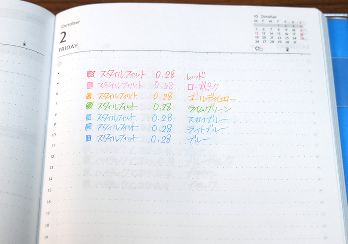 ほぼ日手帳でカラーペンの裏移りを比較してみた!