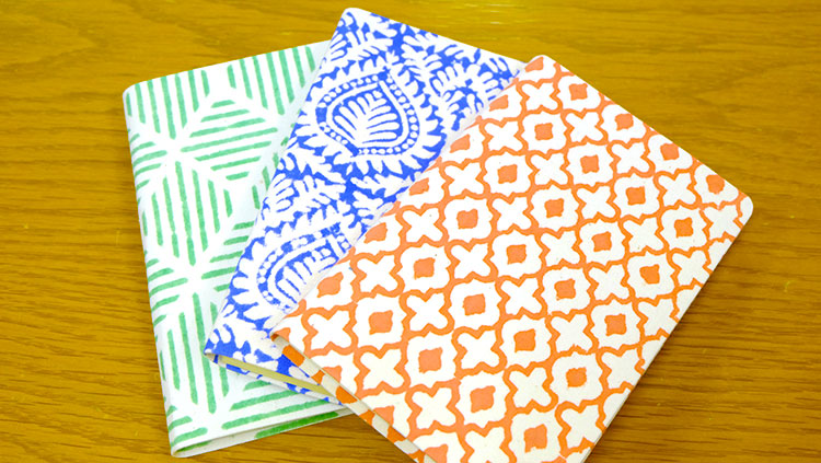 「ブロックプリント」はA6サイズのレフトタイプの手帳です。インドの職人が1枚1枚手で作った、ブロックプリント生地のテキスタイルが魅力の手帳です。