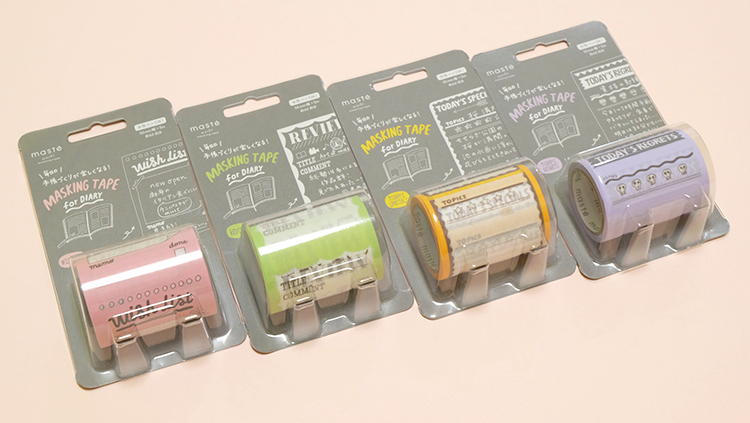 「ライフログ用マスキングテープ」の絵柄は全部で8種類あります。今回はその中から4種類をGET。写真左から