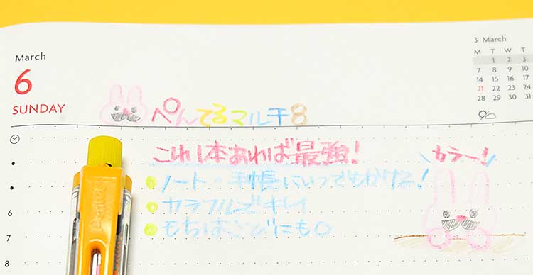 手帳やノートにサクッと色を付けたい…そんな時に、間違いなくおすすめなのが「ぺんてるマルチ8」です!