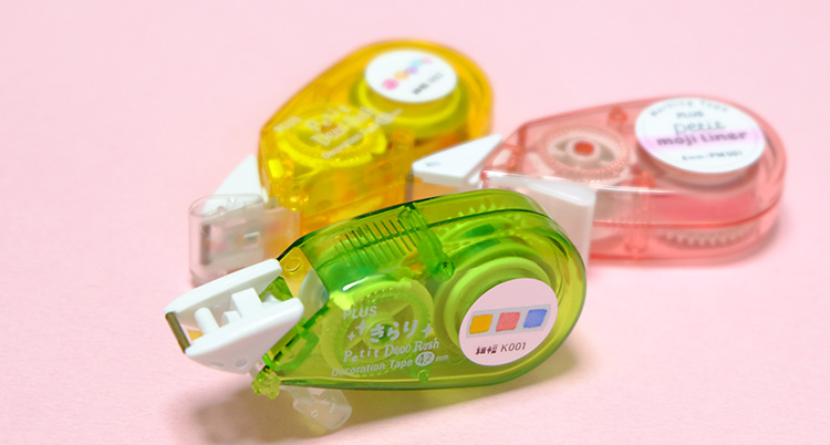 PLUSの人気ステーショナリー「デコラッシュ」が“小さく”なったのが、こちらの「プチデコラッシュ(Petit Deco Rush)」です。プチデコラッシュは、修正テープ感覚で使えるデコレーションテープ。手帳やノートを簡単にかわいくデコれちゃいます!