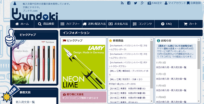 文房具の通販サイトといえば、こちらの「ブンドキ.com」輸入文具や日本の定番文具など、ありとあらゆる文房具を販売しているサイトです。とにかく取り扱っているメーカーさんが多いので、文房具屋さんでは見かけないマニアックな文房具もあります。文房具のカテゴリー分けも細かいので、文房具好きの方は一度覗いてみるのがおすすめです!